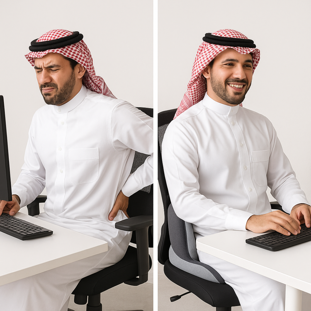 الجلوس الطويل بوضعية خاطئة يسبب ضغطًا مستمرًا على العمود الفقري، مما يؤدي إلى آلام في أسفل الظهر، الرقبة، وحتى الفخذين. سواء كنت تجلس لساعات في المكتب، السيارة، أو أثناء الدراسة، جسمك يحتاج إلى دعم حقيقي يحافظ على راحتك وصحتك.